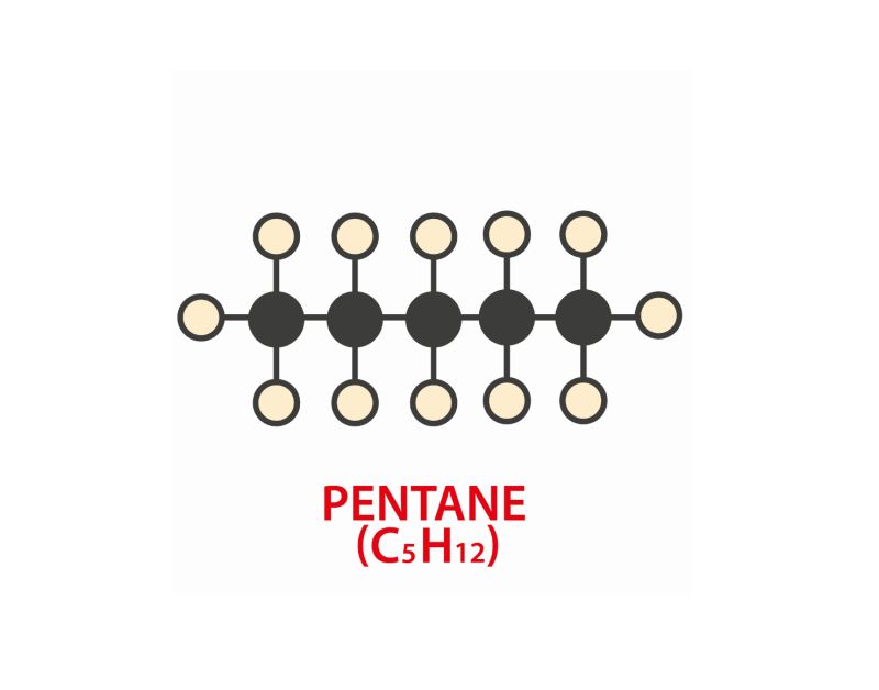 Pentane (C5H12) is one of the most volatile liquid alkanes at ambient temperature. Therefore, it is often used in laboratories as a solvent that can evaporate quickly and easily. However, this gas can be found in more applications. Pentane can also be added to refrigerant systems as a refrigerant fluid additive or to produce (polystyrene) foams.